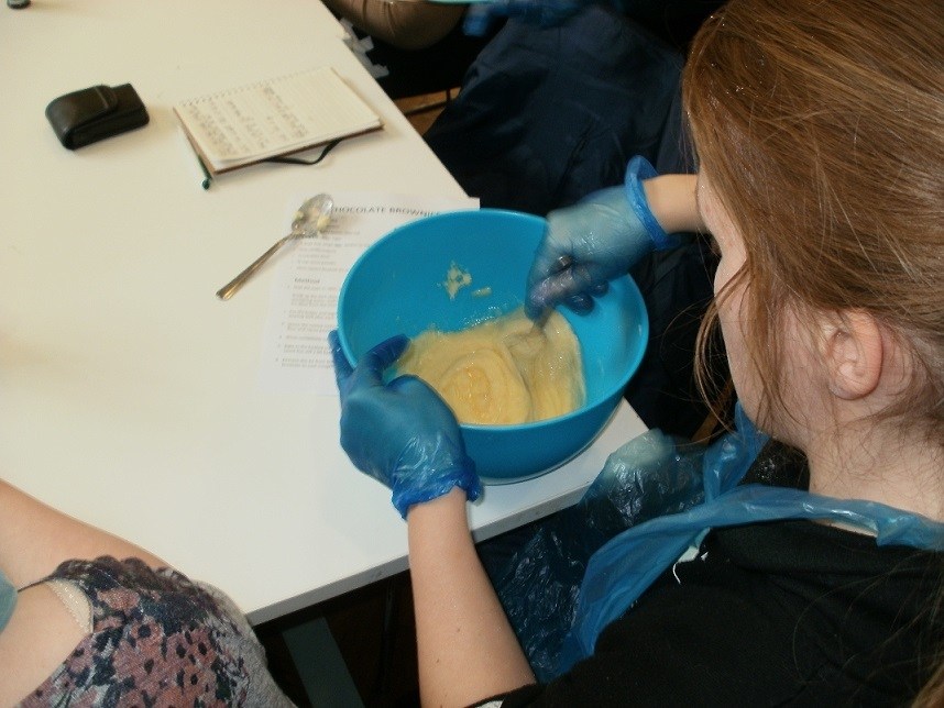 It’s Tuesday afternoon at the Enterprise Hub and that means ‘Just Desserts’ and the chance for young and not-so-young wannabe chefs to roll up their sleeves and contribute to the making of a sensational sweet treat. Today’s tasty challenge is to create a batch of chocolate brownies to rival those of Domestic Goddess, Nigella.