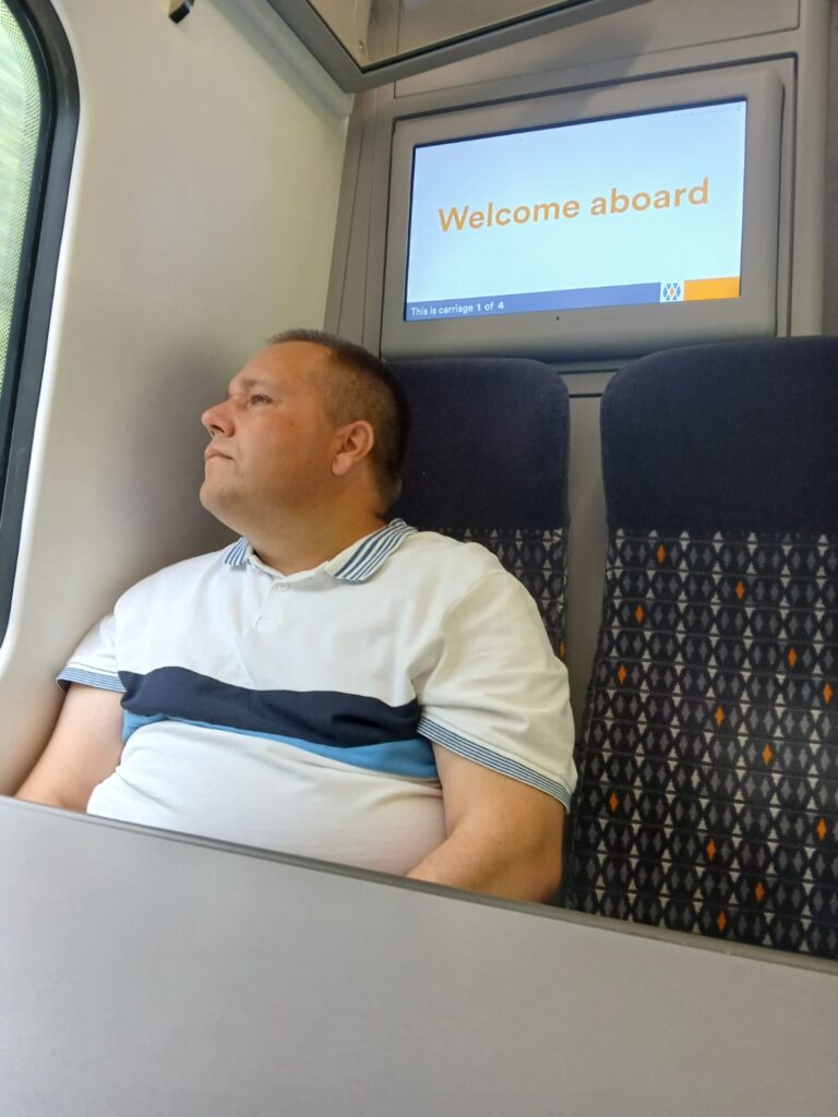 Darren has been supported by Nick, one of our dedicated support workers, for several years. Together, they share a weekly adventure that combines independence, friendship, and one of Darren’s biggest passions — trains!